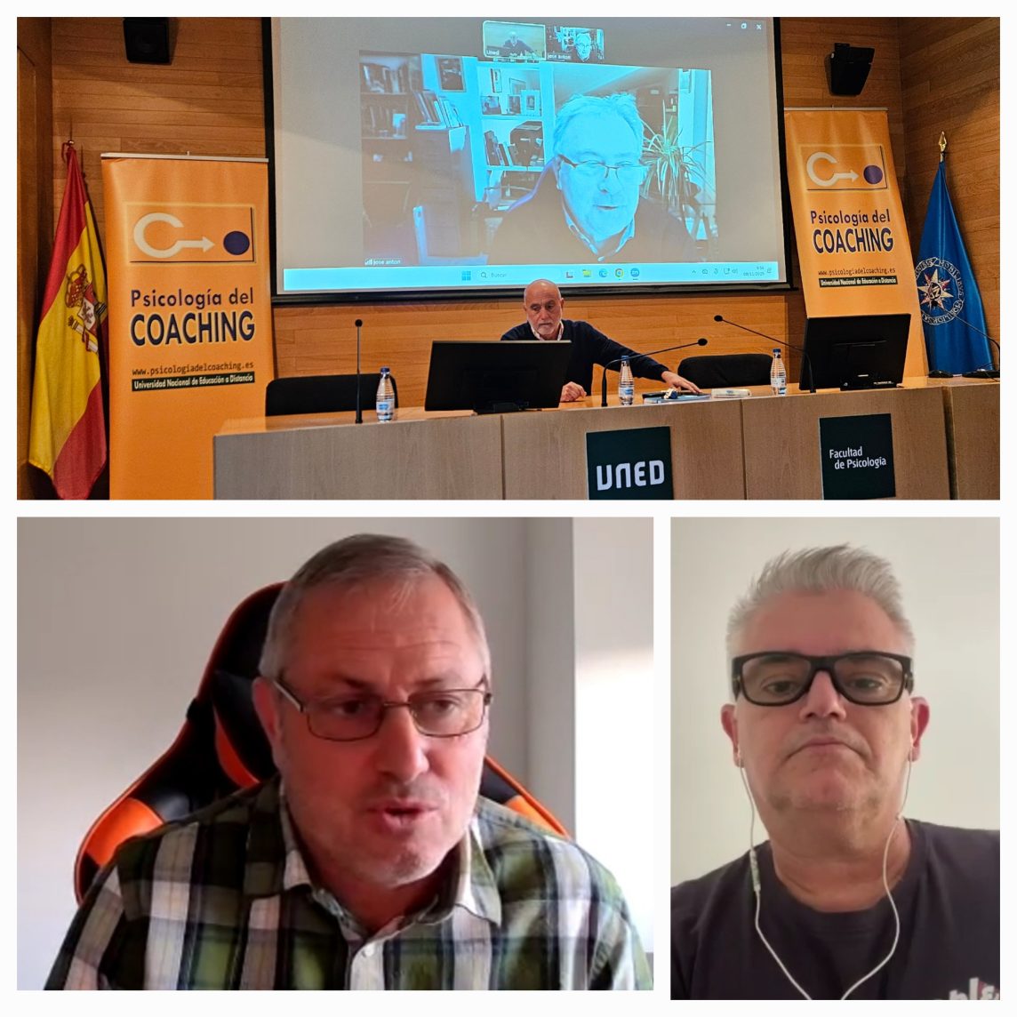 Máster en Psicología del Coaching Los días 21 y 22 de abril tuvo lugar una nueva sesión presencial/online del Master en Psicología del Coaching de la UNED. El viernes 21 los alumnos de 1er curso iniciaron la jornada con la exposición de una experiencia práctica de coaching a cargo de Pablo Martínez-Arroyo y Marco Maglienti,